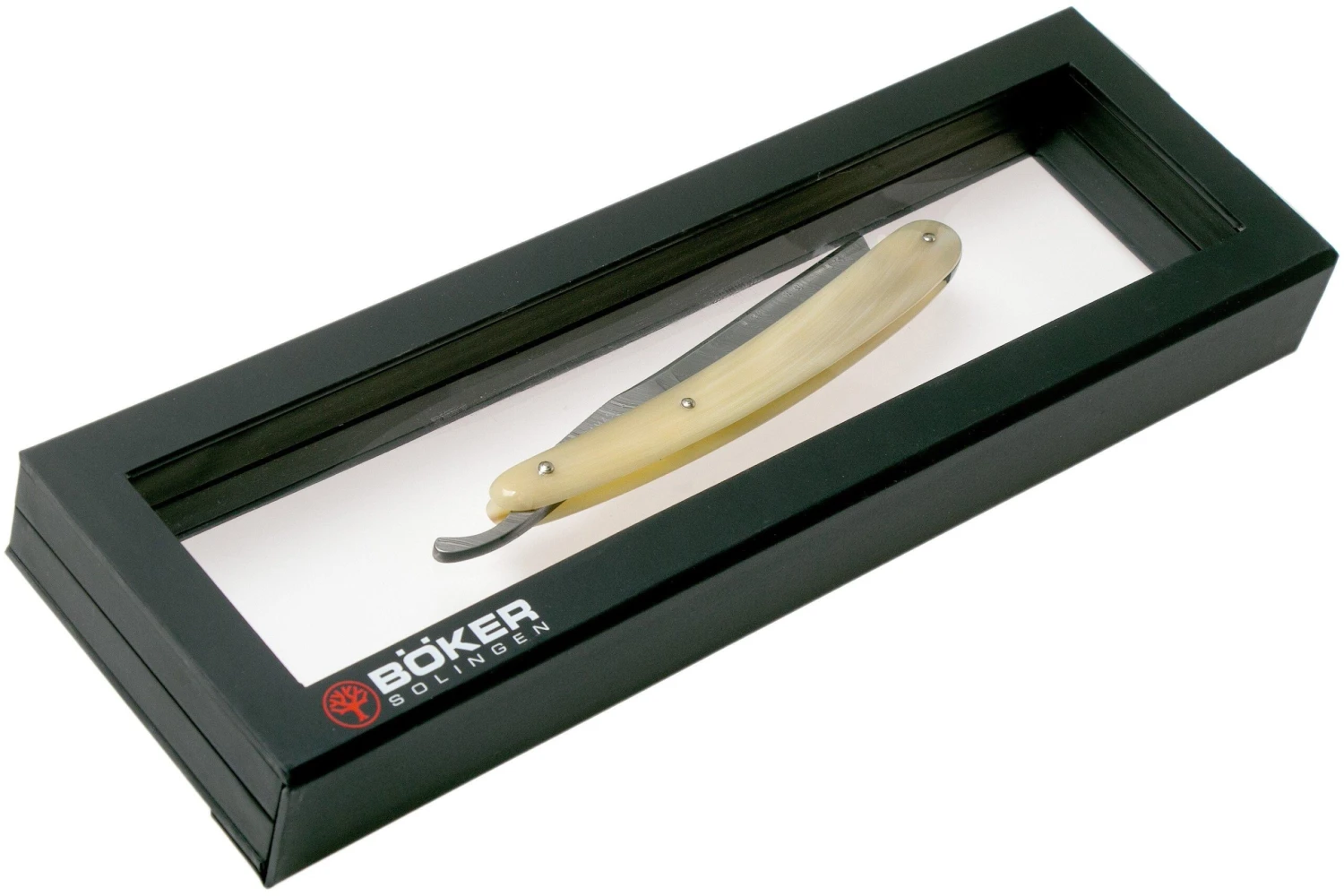 Le Böker Manufaktur Damascus Horn 140623DAM est un rasoir coupe-choux de la plus haute qualité. La marque Böker s’est forgé une excellente réputation en fabriquant des rasoirs coupe-choux fantastiques depuis plus de 100 ans. Ce rasoir droit est fabriqué dans l’atelier de Böker situé à Solingen en Allemagne.