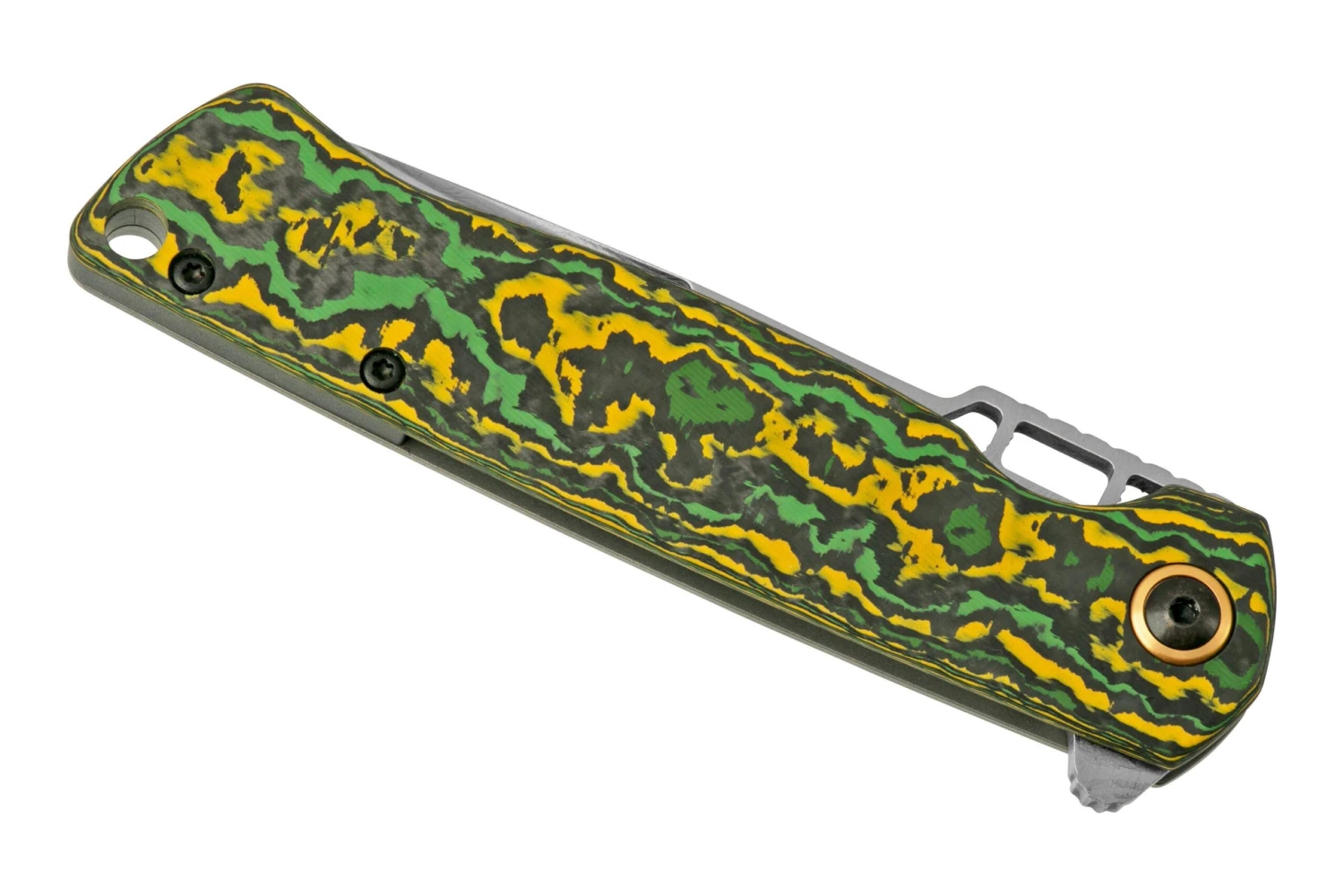 Le Böker Plus Messerschmitt ME 109 est un super couteau de poche, avec une lame damassée faite à partir de pièces d’un véritable Messerschmitt ME 109. L’avion dont les pièces d’acier ont été utilisées a été abattu en plein air, alors qu’il volait au dessus de l’Angleterre. Chad Nichols a forgé ensemble de l’acier du siège du pilote et une partie de l’hélice avec un autre acier, créant ainsi un acier damassé magnifique et riche en histoire. La fente vers la pointe de la lame est également un hommage au ME 109, faisant référence aux encoches dans la pointe de l’avion où s’accrochent les armes.