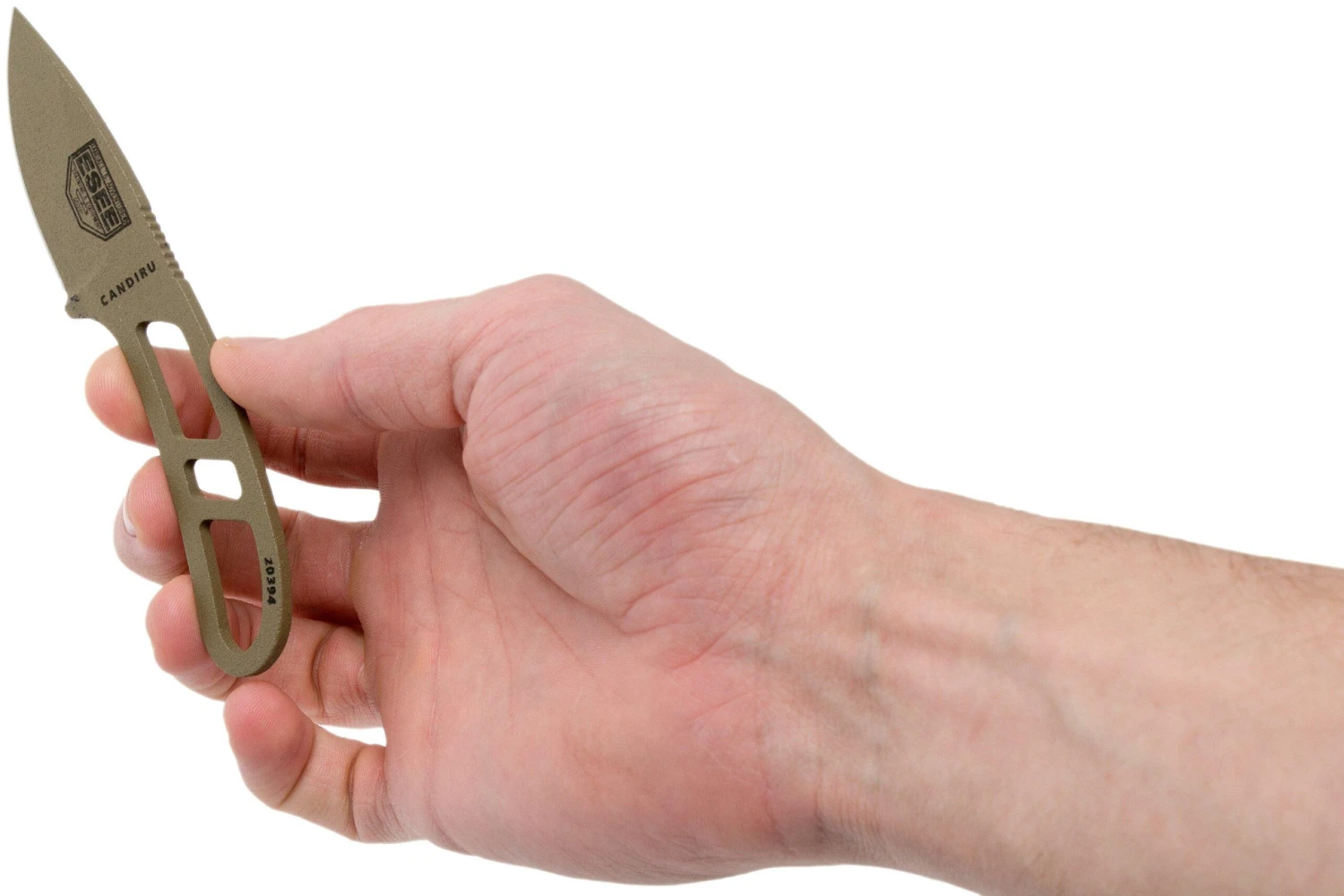 Le Candiru d’ESEE Knives est le plus petit couteau de leur collection. Petit en taille, mais grand en qualité et performance ! Ce couteau est en acier carbone 1095 comme beaucoup de couteaux ESEE. Une grande qualité de coupe et facile à aiguiser. Seul inconvénient, la sensibilité à la corrosion, qui est grandement atténuée grâce au revêtement poudré de haute qualité appliqué sur l’acier. Nous conseillons de conserver le couteau sec et éventuellement un peu huilé.