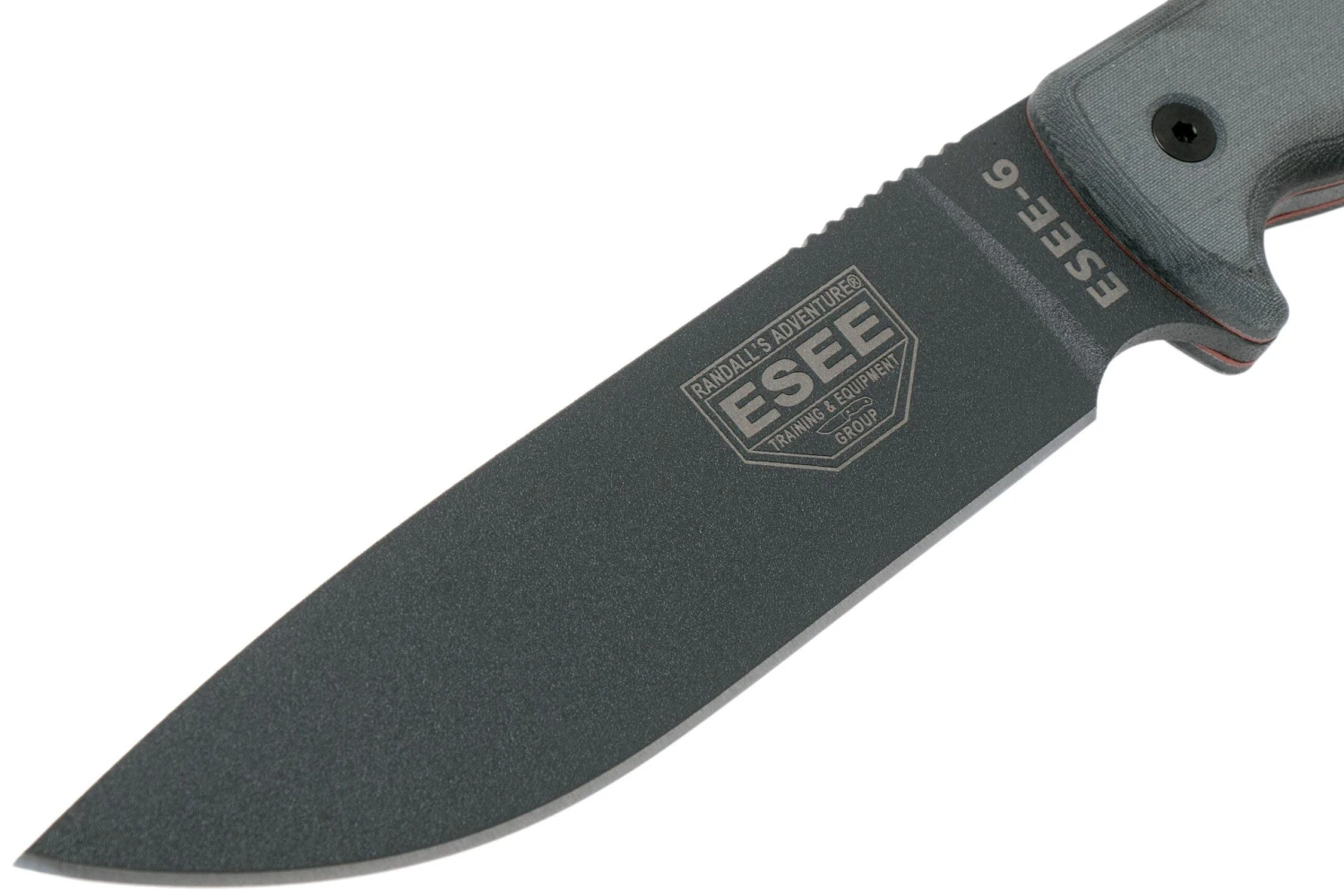 L’ ESEE Model 6 est un couteau de survie solide avec une lame en acier carbone 1095. L’acier carbone n’étant pas résistant à la corrosion, un revêtement poudré est appliqué sur la lame pour une meilleure protection contre la rouille. La grande performance de l’acier garantit un plaisir d’utilisation à vie. La lame full tang est entourée d’un manche en micarta. Ce manche est un peu rugueux au toucher ce qui permet une bonne adhérence et un confort d’utilisation optimal. L’ESEE Model 6 est un couteau grand et solide qui est fait pour une utilisation intensive. Avec un poids de 335 grammes, il est relativement lourd.