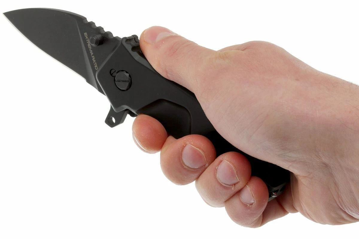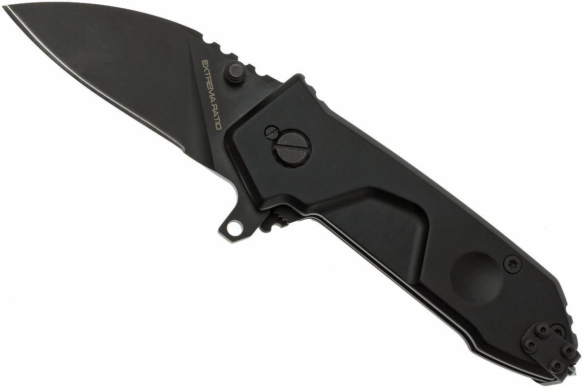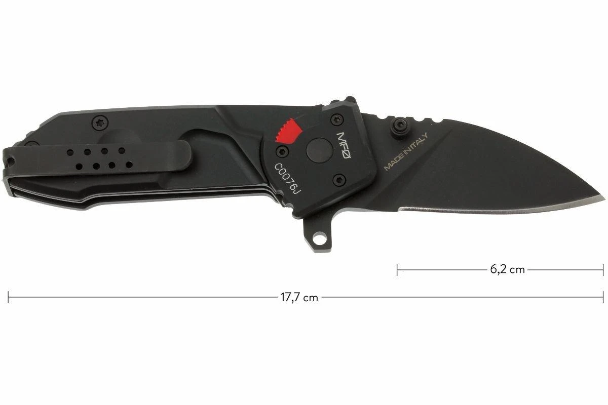 Avec le MF0, Extrema Ratio a fabriqué une plus petite version du MF2. Avec ces mesures il est idéal comme couteau EDC ou comme couteau de secours. La poignée du MF0 est équipée d’un sous-manche qui rend la prise extrêmement stable et qui évite le glissement de la main vers la lame. Le ‘blade guard’ permet une rapide ouverture avec l’index de la main qui tient le couteau (ouverture semi-assistée, selon le nom donné par Extrema Ratio)