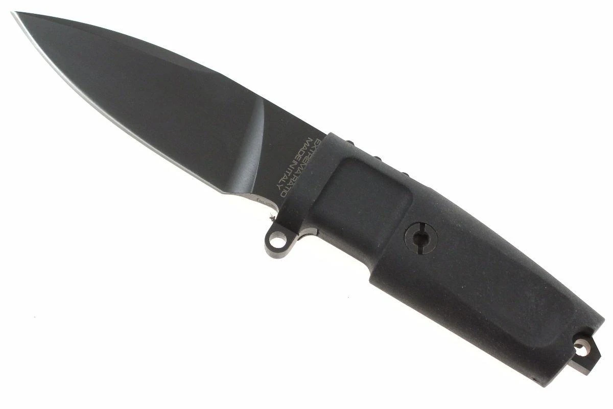 Un couteau « de réserve » tactique polyvalent. L’étui synthétique renforcé est muni d’une fixation de type tek-lok, ce qui permet de le porter horizontalement ou verticalement.