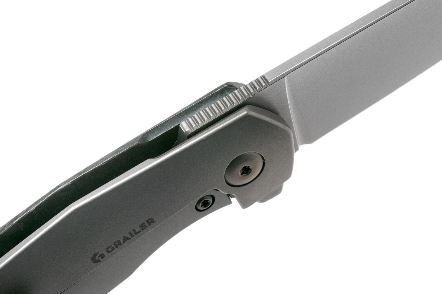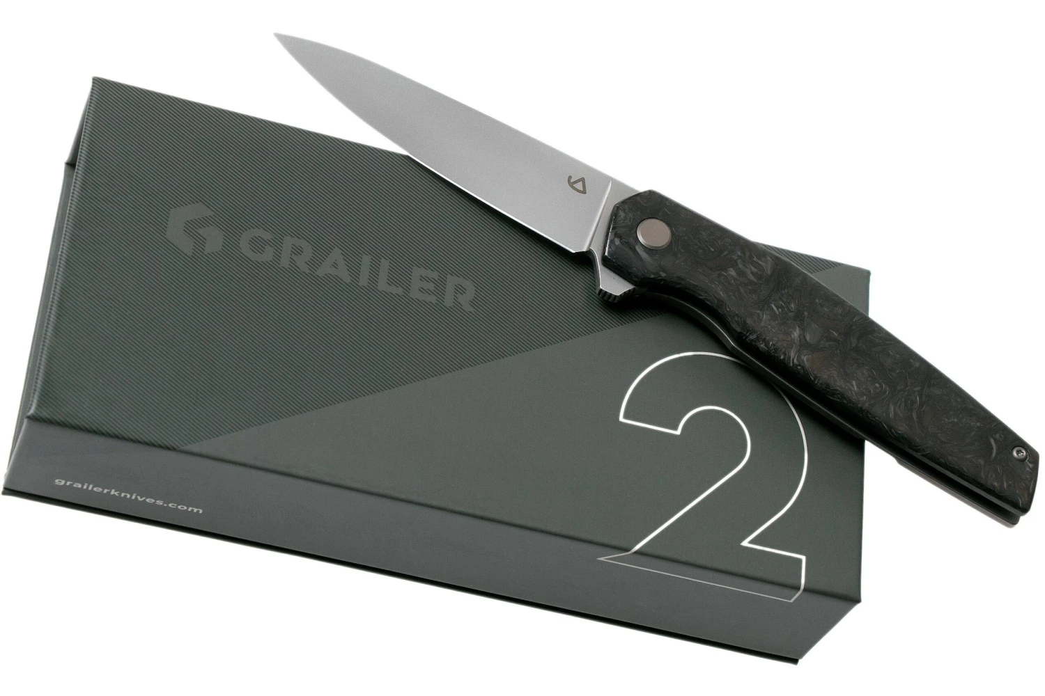 Le Grailer 2 est un couteau de poche élégant et léger conçu par Simen Stryckers. Cela fait plusieurs années maintenant que nous suivons son travail de près et sommes très impressionnés par ses conceptions et développements. Malheureusement, il est difficile de mettre la main sur l’un de ses couteaux. Nous avons donc décidé de collaborer avec Simen pour la conception de notre Grailer 2. Le design de ce couteau de poche est basé sur son modèle Custom Findus V2. Un couteau de gentleman élégant qui convient parfaitement pour une utilisation EDC. Pour créer un couteau digne de sa version Custom, nous avons sélectionné des matériaux de qualité supérieure et avons opté pour une fabrication de haut niveau. De quoi vous offrir un véritable couteau de collection que l’on peut utiliser sans peur, le tout à un prix très compétitif.