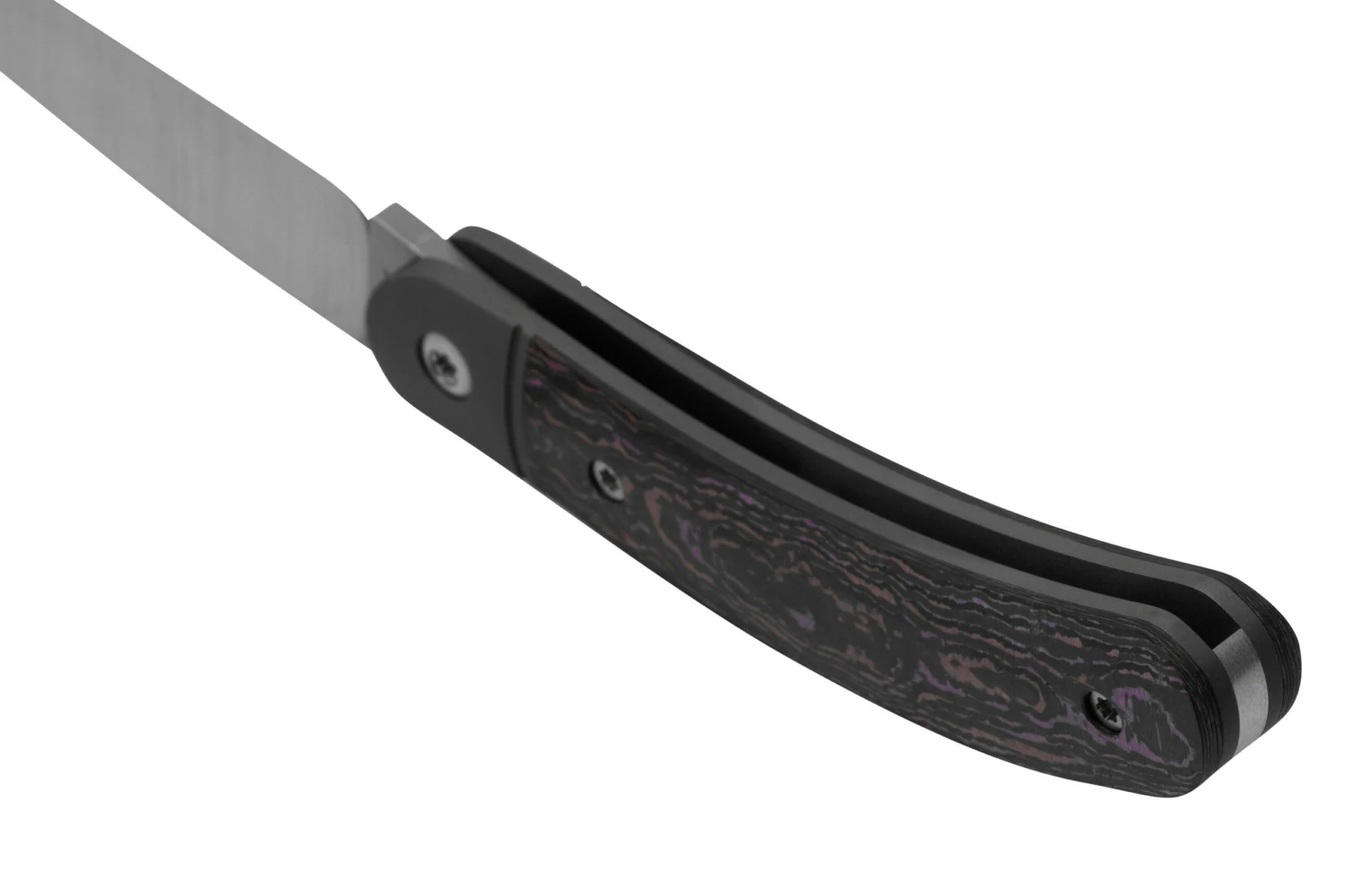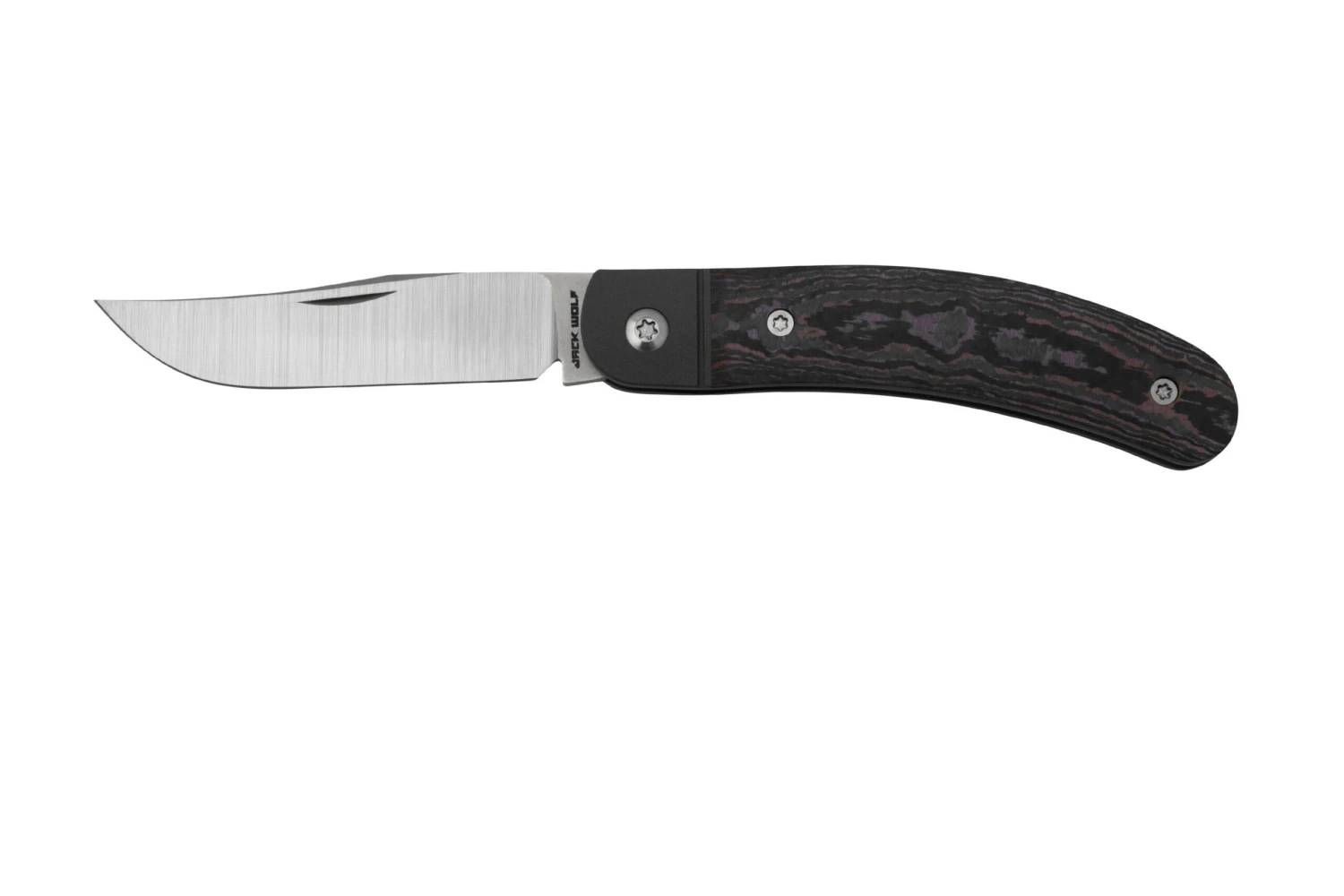 Avec le Jack Wolf Knives Javelina Jack Fat Carbon Purple Haze, Benjamin Belkin de Jack Wolf Knives sort un nouveau modèle au superbe design et à la finition soignée. Ce design s’appelle « Sowbelly », et tient son nom des formes rondes du manche, qui rappellent le ventre d’un cochon. Le nom « Javelina » est un clin d’œil à ce design, car c’est le surnom des pécaris d’Amérique du Sud. Il s’agit d’un excellent couteau de gentleman de très bonne qualité !