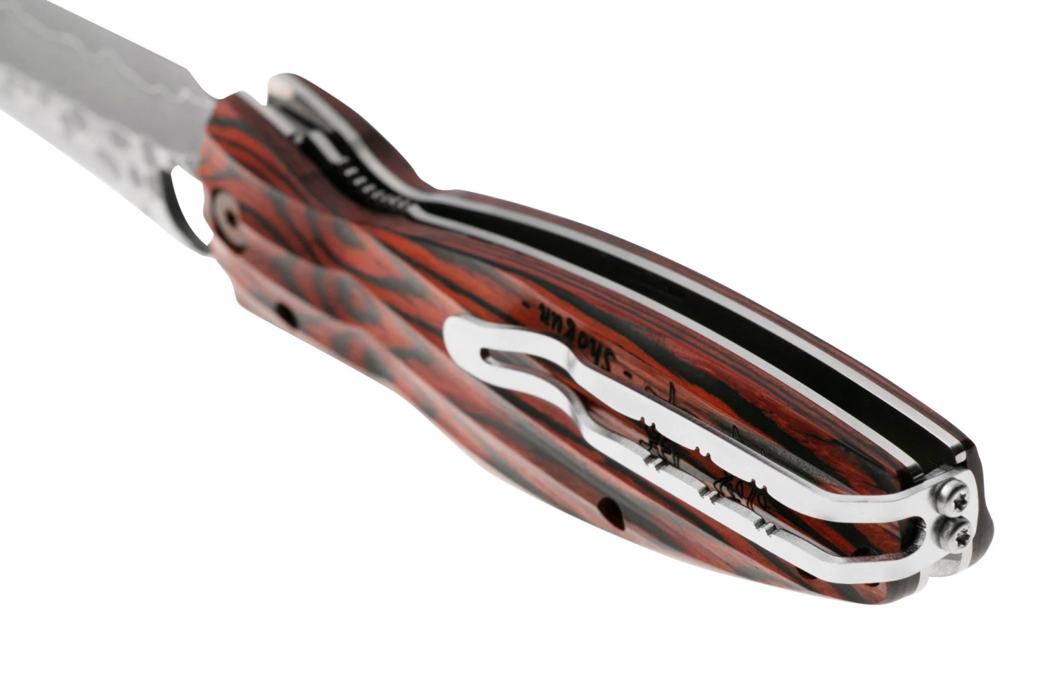 Le Mcusta MC-0183G Sengoku Tokugawa Ieyasu SPG2 est un couteau de poche particulier avec des détails très cools. Le manche est relativement spécial. Le bois fraisé en 3D offre une adhérence parfaite pour une prise en main optimale.