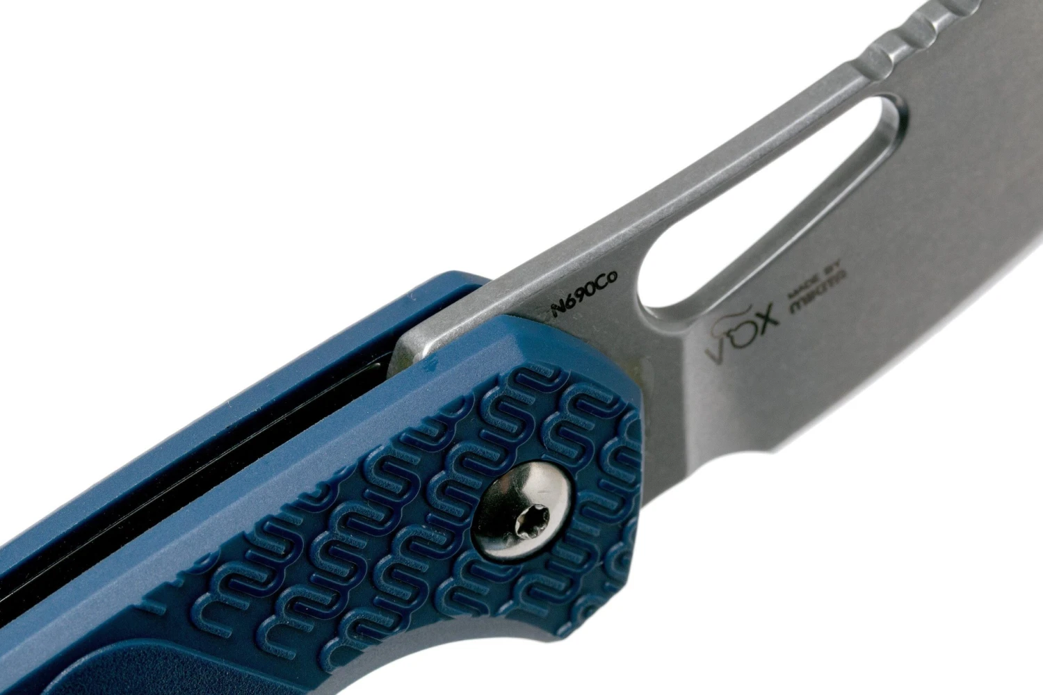 Le MKM Isonzo FX03-2PBL Cleaver Blue FRN est un solide couteau de poche conçu par Jesper Voxnaes et fabriqué par Fox Knives. Le style de Voxnaes est clairement reconnaissable. Des lignes fluides, la forme du trou pour le pouce et le backspacer avec trou pour lanyard. Ce trou pour lanyard est extra large de sorte à pouvoir y attacher un mousqueton. En effet, en plus d’être conçu pour une utilisation EDC, ce couteau est destiné aux amateurs d’activités outdoor et les alpinistes qui aiment attacher leur équipement à portée de main. Grâce à sa petite taille, le Isonzo est parfait comme couteau secondaire ou comme couteau passe partout pour ne pas trop attirer l’attention.