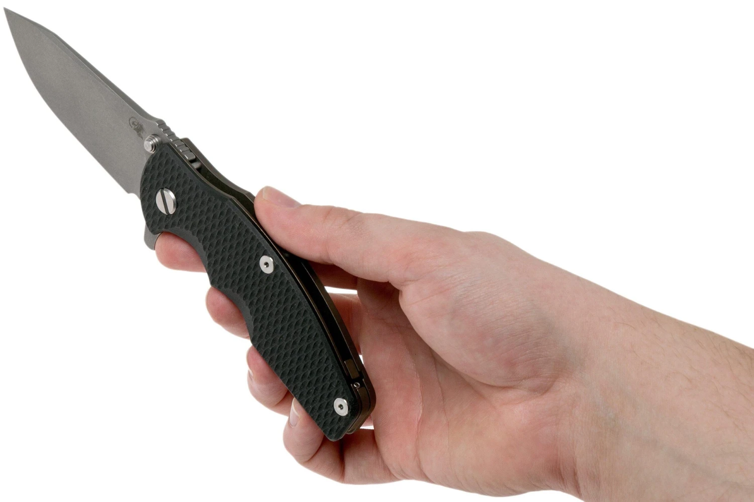 Le Rick Hinderer Jurassic Slicer est un superbe couteau de poche EDC, fabriqué par Rick Hinderer Knives. Le Jurassic emprunte de nombreux éléments de design au Hinderer XM18. Il en résulte cependant un tout autre couteau. Le manche est plus orienté vers le bas ce qui donne une prise en main très différente. D’autres détails subtils diffèrent. Tels que le flipper, moins aigu que pour le XM18 et la longueur de la lame de 3,25 cm par rapport à 3 ou 3,5 pour le XM18. Le Rick Hinder Jurassic est trop grand pour être nommé un petit couteau et en même temps trop petit pour être nommé un grand couteau. Un joli format moyen donc.