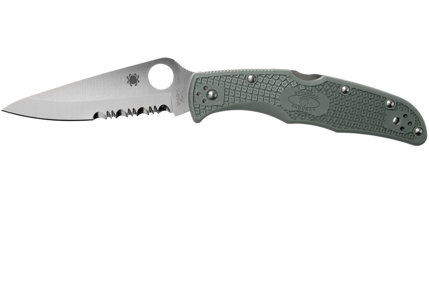 Le Spyderco Endura 4 est le couteau idéal pour les amateurs de couteaux Spyderco trouvant le Delica trop petit. Le Endura 4 a une lame de 9,6 cm. Une différence de seulement 2,3 cm par rapport au Delica qui se ressent immédiatement lorsque vous l’avez dans les mains. Les dimensions de ce couteau sont parfaites. Le manche en FRN (nylon renforcé de fibre de carbone) permet d’avoir un couteau très léger. Les liners en acier apportent une grande robustesse. Ces liners sont ajourés de sorte à ne pas ajouter trop de poids.