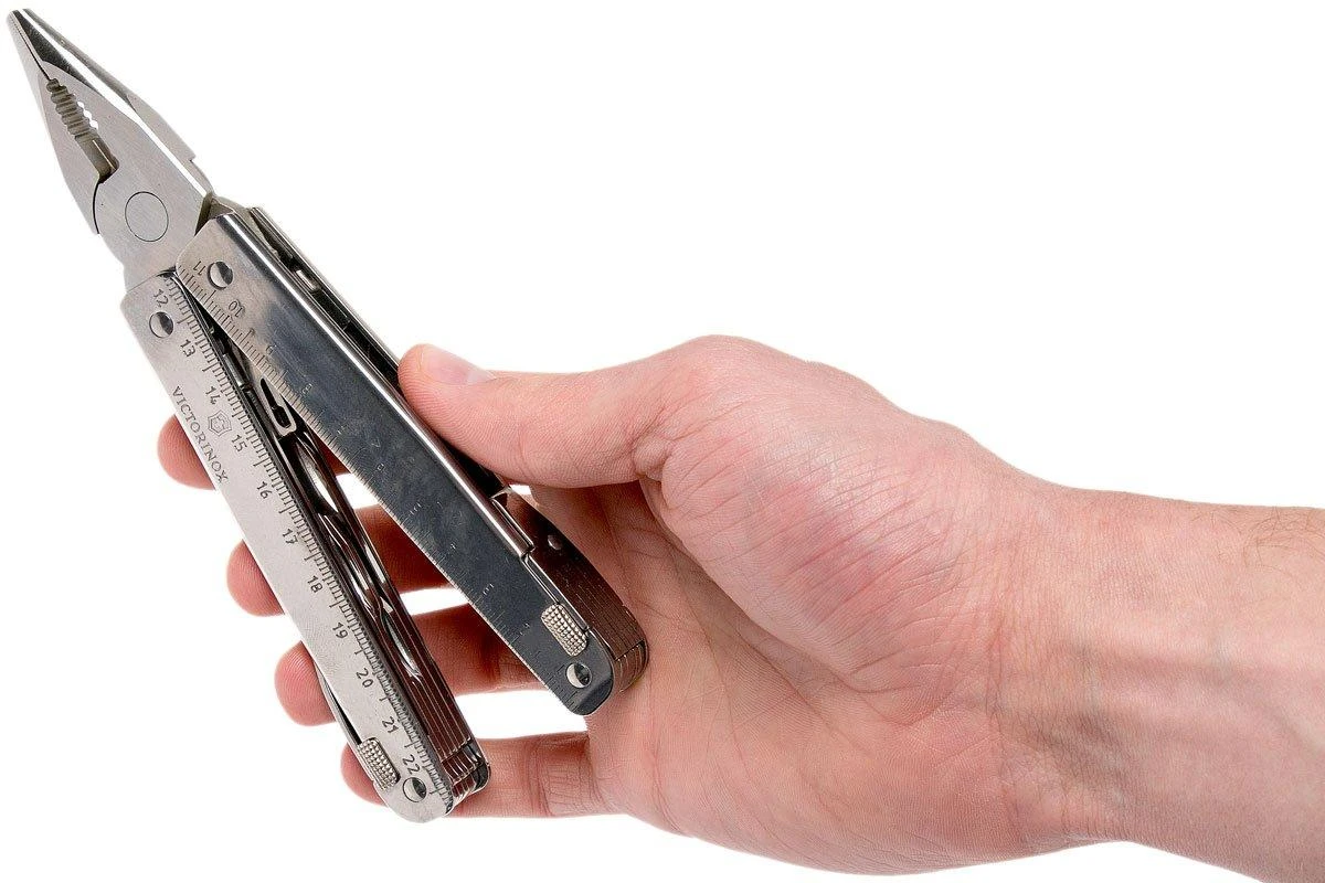 Le Victorinox Swisstool X est une pince multifonction très solide. Fabriqué avec la précision suisse, ce modèle est doté de 11 outils pliants et d’une très bonne pince. La pince multifonction est entièrement faite en acier inoxydable poli. Chaque outil est verrouillé en position ouverte et se replie facilement grâce au mécanisme coulissant. Ce SwissTool offre 26 fonctions.